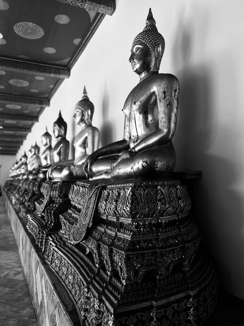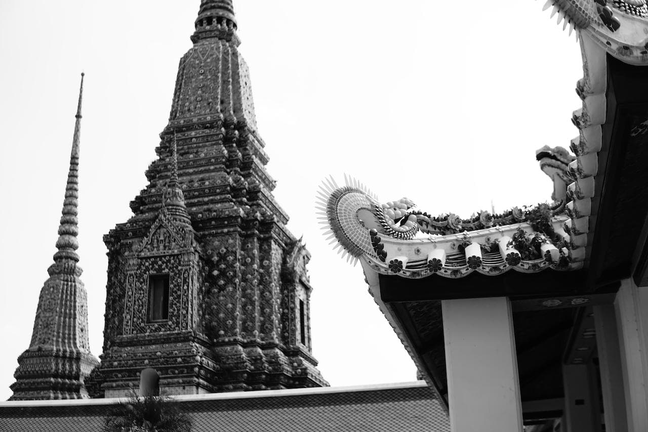 Bangkok bot uns, neben der kulinarischen Höhepunkte, aber auch einige sehr protzige touristische Highlights. Wir besuchten eine ganze Stange an unterschiedlichen Tempeln, so zum Beispiel den Königspalast, den Wat Pho und noch eine längere Reihe anderer krass reicher Bauten. Im Gegensatz zur eher alt-ehrwürdigen Religionsausübung in Nepal war Bangkok das extreme Gegenteil. Wo es nur geht haben die Thais Goldornamentik, goldene Buddhas, Intarsien und aufwändige Verzierungen angebracht. Hier strotzte alles nur voller Reichtum und auch ein wenig Prahlerei, jede Wand glitzerte im Sonnenlicht farbenfroh. Ein Tempel konnte eigentlich nicht von sich Reden machen wenn er nicht mindestens 3 Goldstatuen und 20 vergoldete Türme vorweisen konnte.