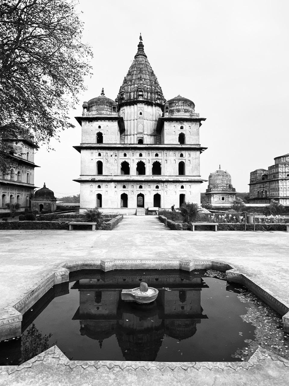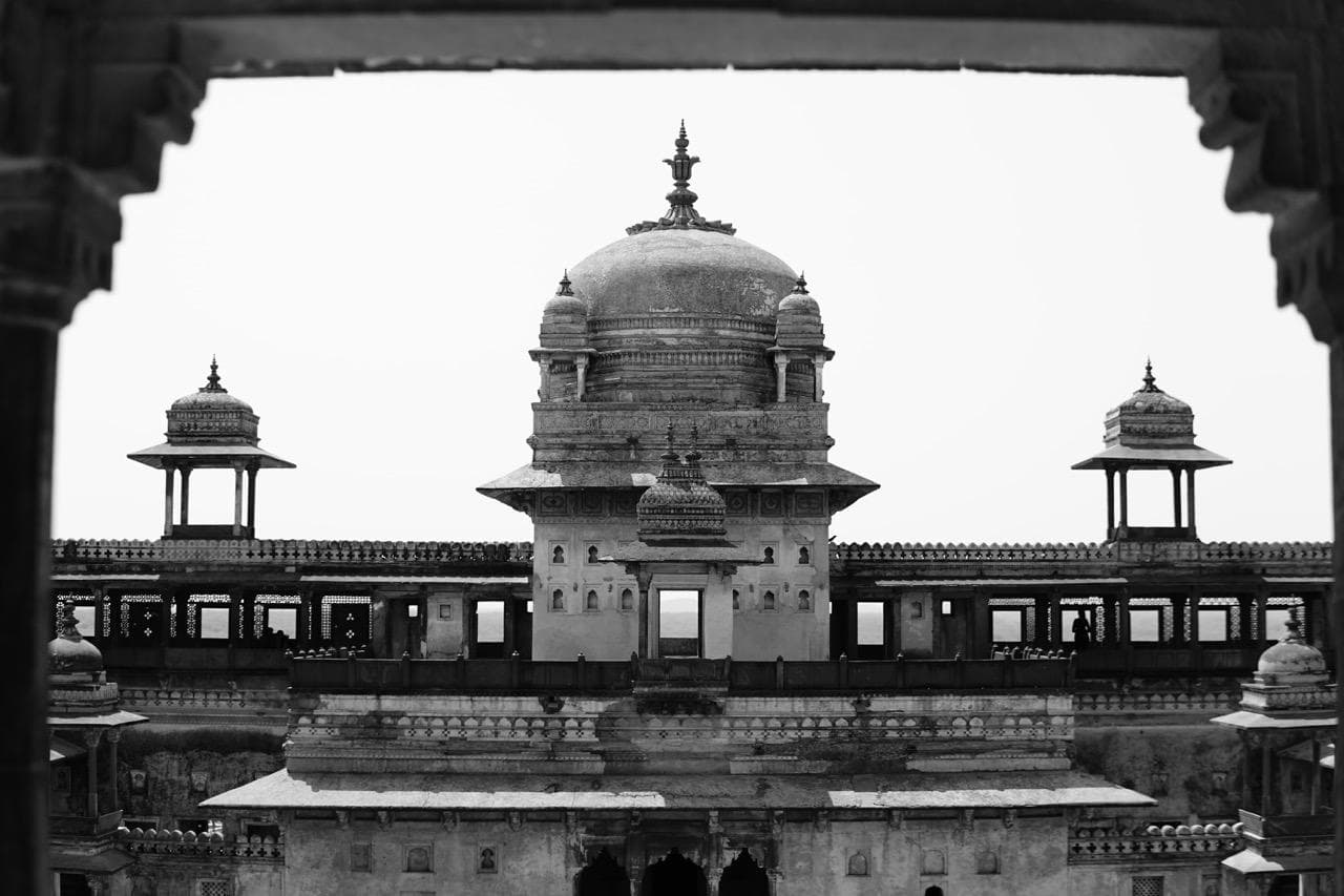 Bundela, das Königreich Orchhas, erstreckte sich über größere Gebiete im nördlichen Zentralindien. Um ein solches Reich zusammenzuhalten waren Bettgeschichten a-La Kamasutra-Jaho wohl nicht ausreichend. Daher schickten sich die Dynasten an, gleich mehrere überdimensionale Bauprojekte zu verwirklichen. Es gibt hier eine große, zentrale Burg mit mehreren kleineren Palästen innerhalb der Burgmauern, aber in direkter Nachbarschaft findet sich auch noch der höchste Tempel Indiens und weitere, nicht weniger beeindruckende hinduistische Tempel und Gedenkstätten. Selbst heutzutage fühlt sich Orchha ein wenig surreal an. Schaut man über die beschaulichen Hügelkuppen und wenigen kleinen Straßenzüge hinweg stoßen in alle Himmelsrichtungen Tempelspitzen und Burgtürmchen aus der gemütlichen Farmlandschaft. In einem kaum 10.000 Seelen fassenden Dorf finden sich manche der bedeutendsten Bauten ihrer Epoche, eingerahmt von von Affen geplagten Wasserbüffeln die ihre gemächlichen Runden um die Burgruinen drehen. Wie beeindruckend mag sich die Stadtsilhouette erst auf den mittelalterlichen Besucher gewirkt haben, wenn dieser noch nicht die absurden Großstädte wie Delhi oder Kolkatta kannte? Während dem Besuch der unterschiedlichen Bauten ist uns besonders aufgefallen, dass jede Stätte ihren ganz eigenen Charme besaß. Manche würden sagen, jeder Ort brächte seine eigene Energie, sein eigenes Karma, mit sich. Aber das wäre vielleicht doch noch ein wenig zu romantisch für eine Ruine, die vor allem auch von kriegerischer Machtdemonstration geprägt war.