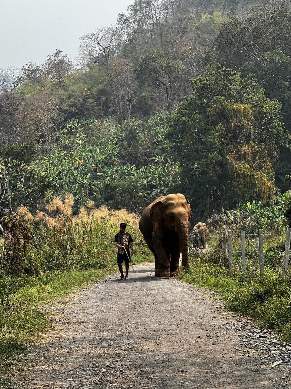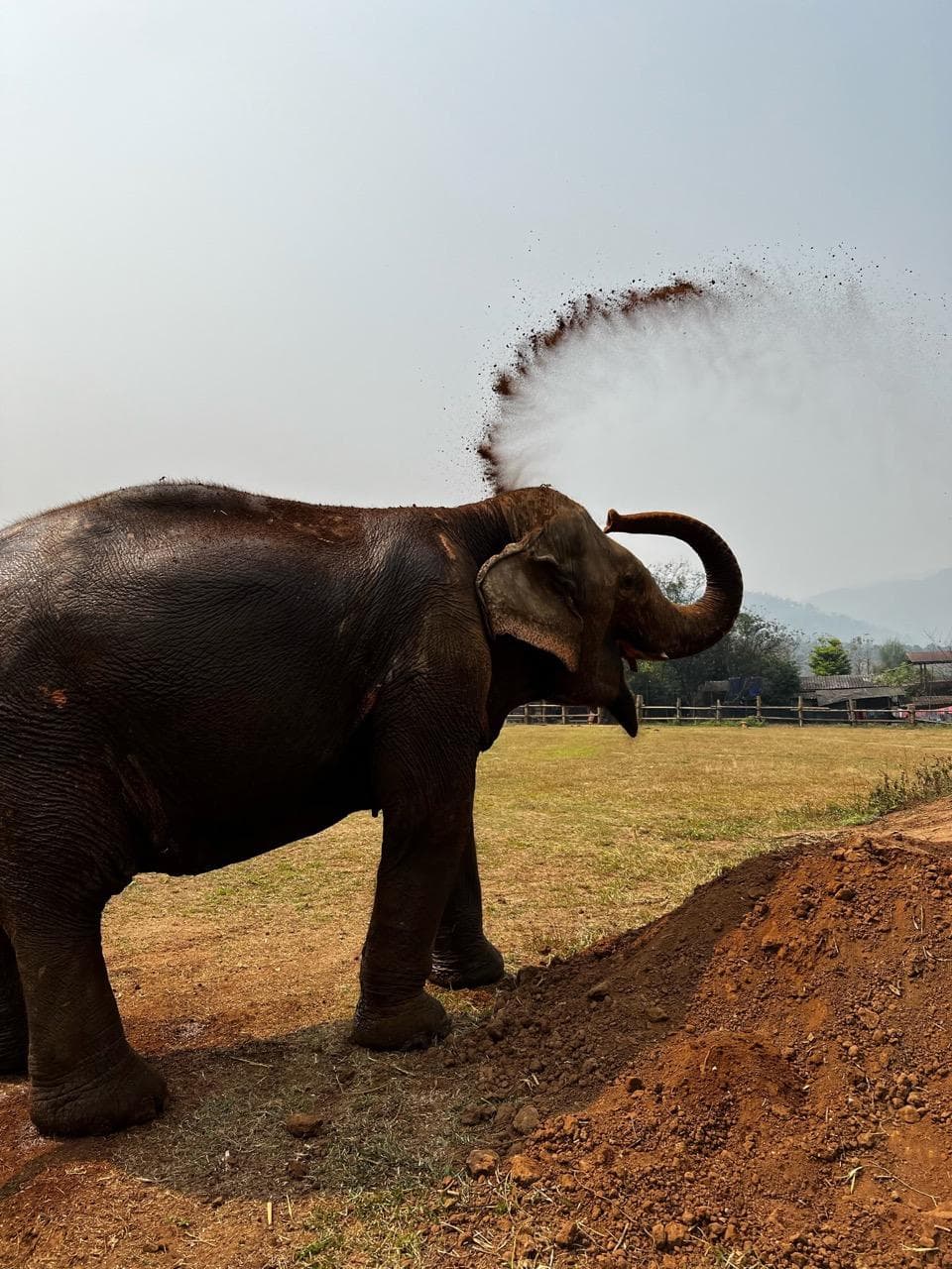 An eine Art Ausflug führt aber selbst als alter, rückenschmerzender Reisender kein Weg vorbei. Der Norden Thailands, insbesondere Chiang Mai, ist bekannt für seine Elefanten. So hat sich hier innerhalb der letzten 20 Jahre, nachdem die industrielle Nutzung von Elefanten stärker reguliert wurde, ein neuer touristischer Zweig eröffnet. In jede Himmelsrichtung gibt es sogenannte Elephant Sanctuaries, also Orte, an denen Elefanten in mehr oder weniger artgerechter Haltung gehalten werden um ihnen vordergründig einfach ein besseres Leben nach den enthaltsamen und schrecklichen Arbeiten als Touristen- oder Holzfällerelefanten zu ermöglichen. Eigentlich, so haben wir aber recht schnell bemerkt, ist die Sache mit den Elefanten aber hauptsächlich eine Touristenattraktion unter dem Deckmantel der Tierliebe. Da wir zwar einerseits interessiert an diesen Tieren sind, andererseits aber keine Tierquälerei unterstützen wollten, haben wir uns viele Gedanken gemacht ob und in welches Sanctuary wir gehen könnten. Letzten Endes entschieden wir in eines zu gehen, das garantierte, dass die Elefanten ein großes Gebiet für sich alleine haben und zudem manche Tätigkeiten, insbesondere das Tragen oder zu intime Baden mit den Elefanten, unterließen. Unser Besuch bei den Elefanten war aber dann dennoch eine recht touristische Angelegenheit. Wir durften die vier wundervollen Tiere füttern, ihnen beim Baden zuschauen und am Ende auch noch dem Schlammbad beiwohnen. Dabei schien es die ganze Zeit so, als ob die Tiere zwar Spaß an der Sache hatten, sich aber vielleicht auch schon zu sehr an diese alltägliche Prozedur gewöhnt hatten. Andererseits konnten wir auf unserem Weg auch ganz andere Elefanten-Resorts beobachten, bei denen es den Elefanten sichtlich schlecht ging. Vielleicht gelang es uns also, einen gewissen Kompromiss aus Neugier und Tierwohl zu bewahren.