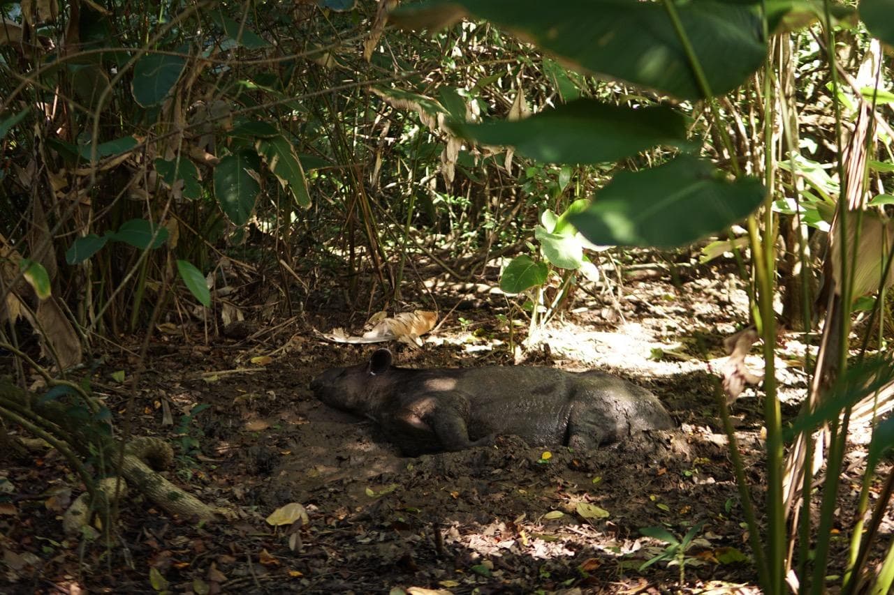 Naja, aber was wäre ein Dschungelabenteuer ohne die obligatorischen anfänglichen Hürden. So kamen wir denn letzten Endes am Ende der Welt an, trafen uns am Abend vor unserer zweitägigen Tour noch einmal mit unserem Guide um ihm schweren Herzens auch noch unser letztes Geld für die teure Tour zu überreichen und ihm ein paar letzte hoffentlich überlebenswichtigen Informationen abzugewinnen. Am nächsten Morgen ging es dann auch um unchristliche 4 Stunden nach Mitternacht los, hinein in das voll gestopfte Boot, bis an die Zähne bewaffnet für den kommenden Überlebenskampf und hellwach, denn egal wie früh es ist, ein wildgewordener Tapir ist schon vor dir wach also sei allzeit bereit! Nach unserer nassen Landung am wilden Ufer ging es für uns ersteinmal mit vielleicht einhundert weiteren Abenteurern zur Registrierung, Gepäckkontrolle und dann letztlich zur Ranch. Schon auf dem Weg wurde uns so langsam klar dass das, was wir uns vorgestellt hatten, wohl nicht so ganz dem entsprechen würde was die nächsten Tage für uns bringen würden. Uns erwartete ein riesiger Schlafsaal für hunderten Übernachtungsgästen und drei warme Mahlzeiten am Tag. Nicht gerade ein Lagerfeuer unter Moskitonetz, aber wenigstens rechtfertigte die Ranch, eine auf Holzstelen gebaute Konstruktion des Urwald-Tourismus, den Eintrittspreis und unsere Schwabenherzen wussten nicht so recht ob sie feiern oder weinen sollten. Doch auch wenn die Unterkunft ausnahmsweise mal unsere Erwartungen übertraf war doch der Corcovado-Nationalpark selbst genau jener unberührte, wilde, dichte und ehrlicherweise auch extrem schwüle Fleckchen Erde den wir uns erhofft hatten. So fanden wir dann auch die ein oder andere magische Begegnung in diesem Wald, der nur dank eines spannenden Projektes aus den Händen der alten Goldschürfer entrissen werden konnte.