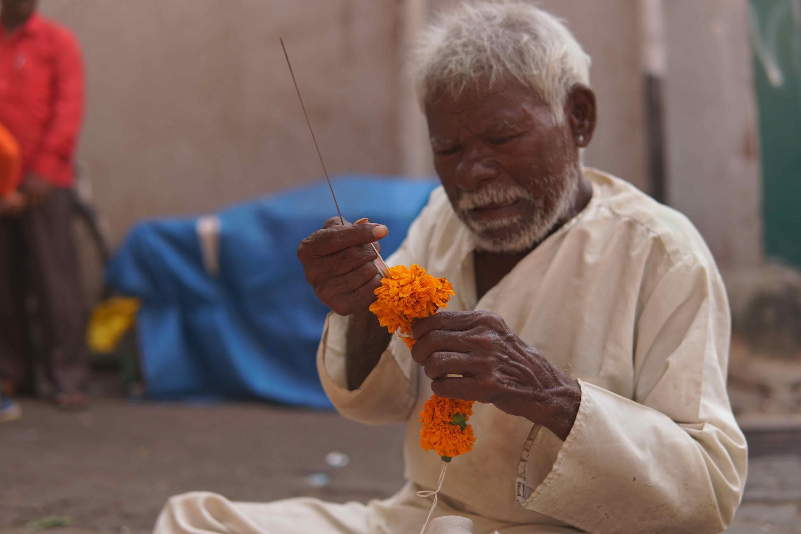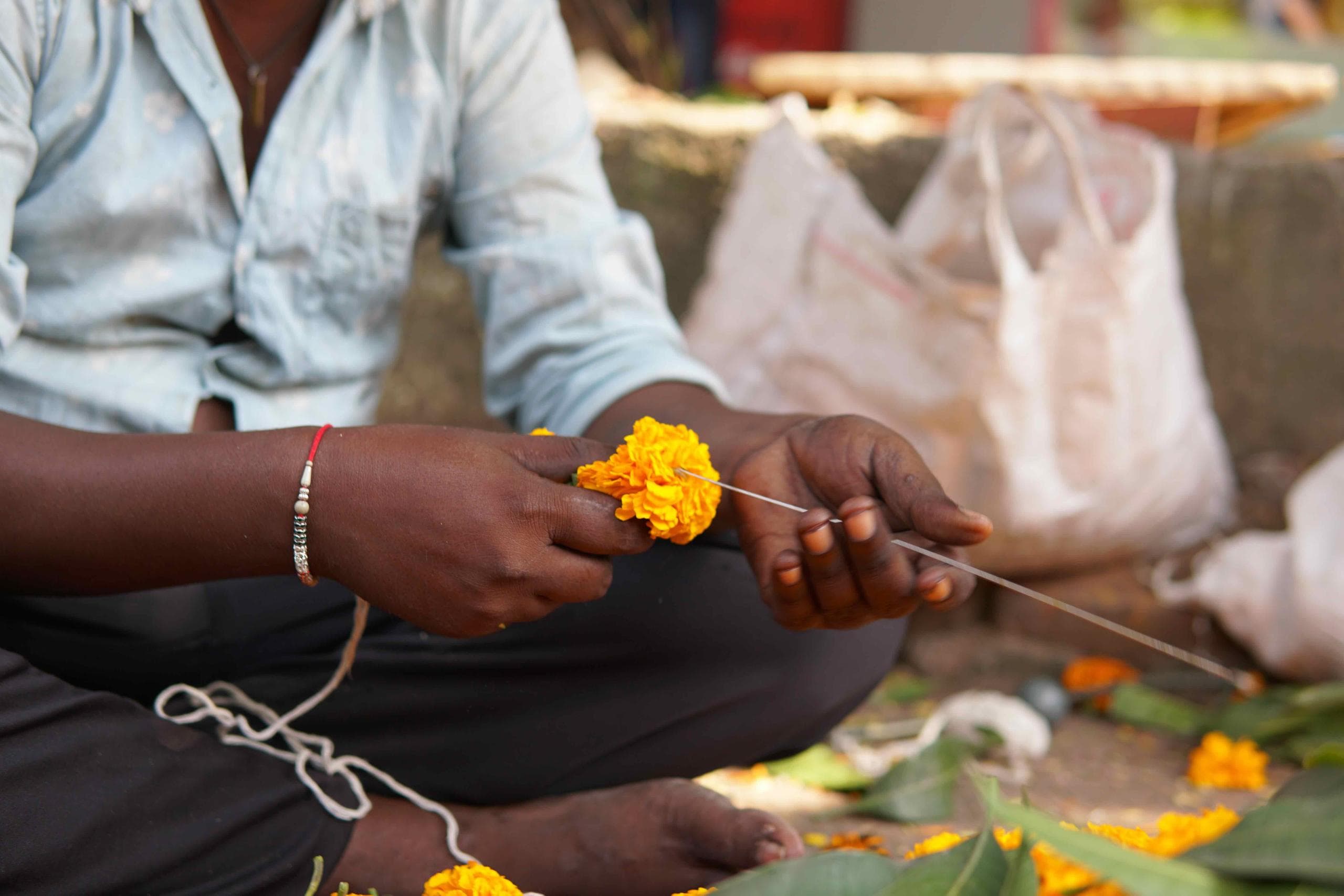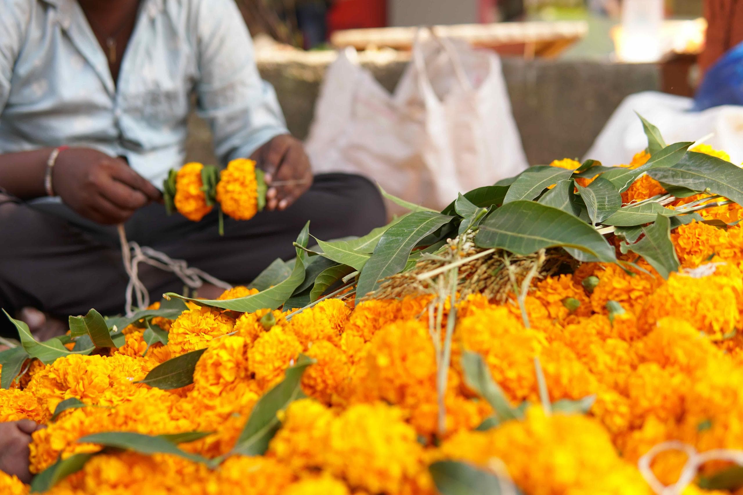 Diese 12 Stunden suchten wir nun aber mit tollen Eindrücken zu füllen, waren wir doch, zugegebenermaßen letztlich fast unverhofft, doch noch rechtzeitig zu Diwali, dem indischen Lichterfest, angekommen. Meiner ersten Enttäuschung zum Trotz (Diwali ist das Lichterfest, nicht das mit den Farben!!) wurden wir aber auch gleich eingenommen von den mehrtägigen Festlichkeiten. Der wichtigste indische Feiertag bei dem es um den Sieg vom Leben über den Tod geht, vom Licht über das Dunkle oder bei uns: Vom schwerfälligem Aufstehen über den garstig penetranten Schlaf in unseren Augen hatte einiges für uns vorbereitet. In der ganzen Stadt wurden frische Blumengirlanden hergestellt, hinduistische Symboliken aufgehängt die einen AFDler ins schwelgen bringen würden, Festtagskleidung getragen die jeden Bollywoodfilm farblos erscheinen lassen würden und neben den großen auch kleine Straßentempel und Altäre bis an den Rand geschmückt sowie beweihräuchert. An jeder vorstellbaren Stelle wurden kleine Mini-Feiern abgehalten, z.B. vor dem mit Blumen geschmückten Lastwagen oder hinten im Stoffladen bei einem provisorisch aufgebautem Altar.