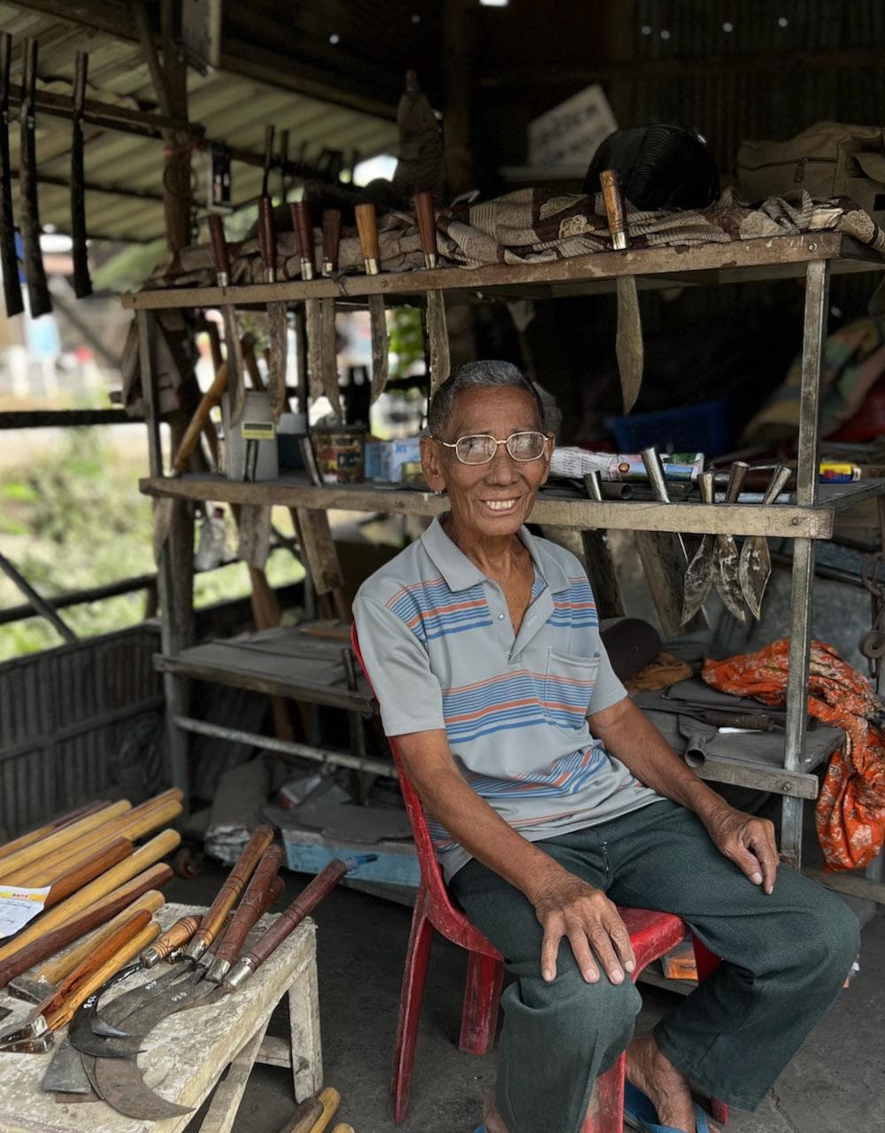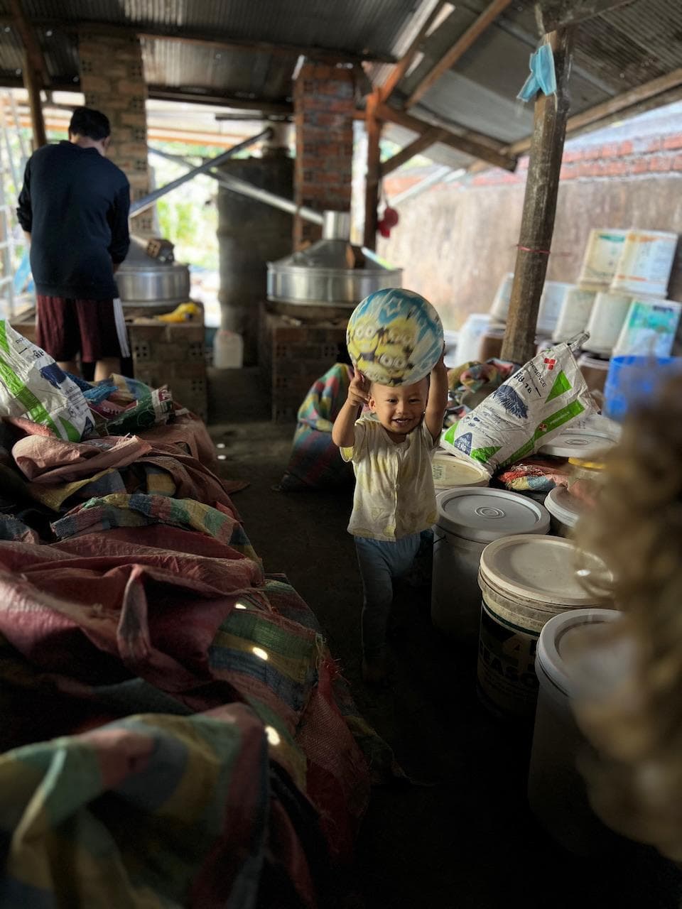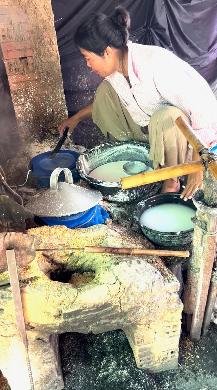 Unser erster Stopp war der lokale Wochenmarkt etwas außerhalb der Großstadt. Nachdem wir unsere schmerzenden Hintern ob der ruppigen Fahrt ein wenig entspannten machten wir uns zusammen mit unserem in Höchstlaune befindlichen Guide auf den Weg durch den Markt. Das wuselige Treiben das dort herrschte macht es im Nachhinein nur schwer möglich, ein klares Bild unserer Eindrücke zu vermitteln. Ein Eisverkäufer ist damit beschäftigt, eine Wagenladung voller Eisquader an die auf Kühlung angewiesenen Fischhändler zu verkaufen. Während einer vor dem Wagen die Abrechnung macht ist der zweite damit beschäftigt, die riesigen Eismassen vom Wagen zu wuchten. Unser Guide läuft von Stand zu Stand und zaubert immer neue, uns völlig unidentifzierbare “Köstlichkeiten” von den Verkäufern hervor. Wir probieren dann der Reihe nach, mindestens leicht verstört, die Speisen und fragen uns direkt wie wir weitere Kostproben vermeiden könnten. Vorbei an gebratenen Vögeln, lebenden Krabben und anderem Krabbelgetier geht es für uns weiter durch die dichte Menschenmasse. Ein Zwischenstopp in einer Schmiede macht uns deutlich, wie viel Handarbeit hier jeden Tag notwendig ist um Klingen, Scharniere und ähnliche Bauteile wieder in Form zu bringen. Während ich noch überlege wohin ich den Rest fritierten Irgendwas unauffällig beseitigen kann drückt mir unser Guide schon die nächste “local specialty” in die Hand. Nachdem ich längere Zeit versuche meinen Mund aufzumachen um ich bei ihm zu bedanken, meine Zähne kleben noch voller Irgendetwasanderem, gebe ich schließlich auf und ergebe mich meinem Schicksal. Unser Guide, angespornt von meinem gequälten Lächeln, verhandelt schon wieder heftig mit der Verkäuferin um die Nächste Kostprobe