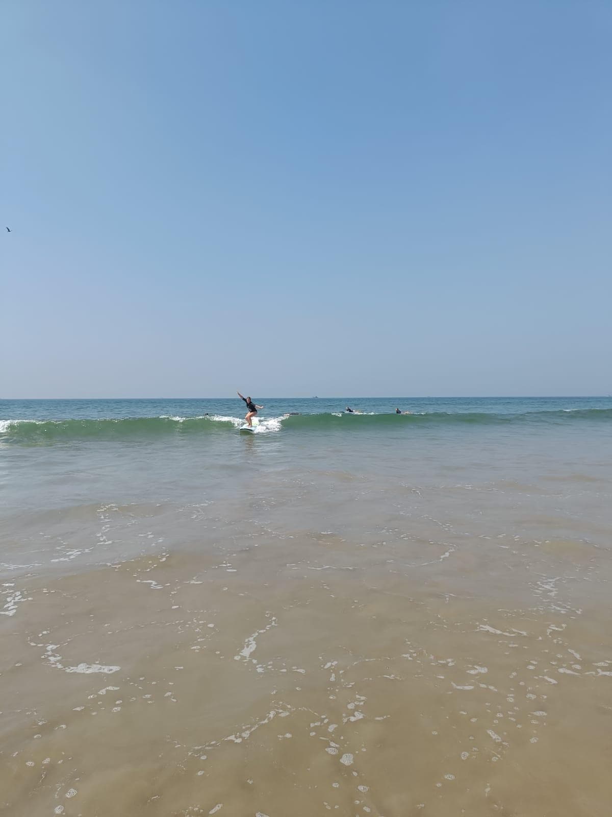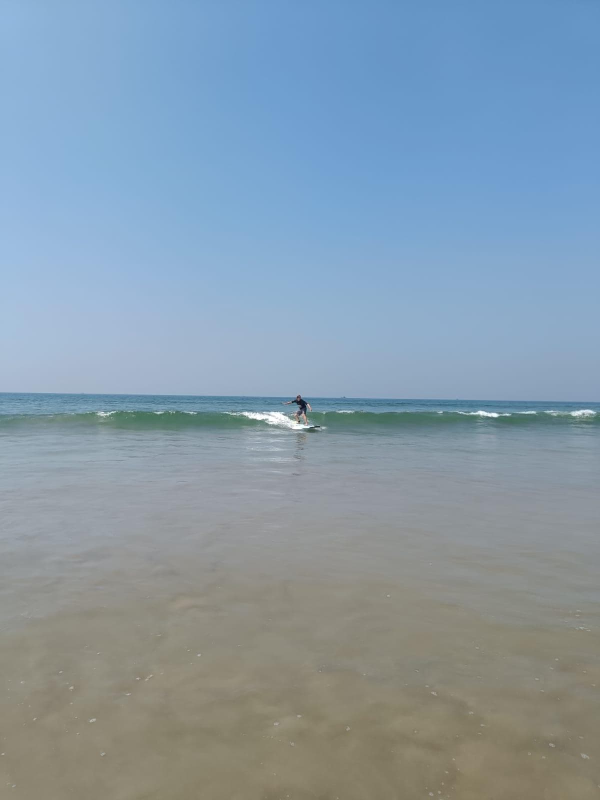 Wegen der immer noch machtvollen Taxi-Mafia entschlossen wir uns, für die nächsten Tage einen Roller auszuleihen und erkundeten so auch die noch abgelegeneren Strände und Dörfer. Von den süßen, bewaldeten Hinterlandstraßen und Landschaften konnten wir einfach nicht genug bekommen. Alle paar Meter einer streunenden Kuh ausweichend fuhren wir glückselig von Strand zu Strand. Wir freundeten uns mit mehreren Einheimischen und auch Reisenden an, ließen uns massieren und hatten auch 3 Tage lang Surfstunden bei “Mumu”. Wir ließen uns in einer Schneiderei neue Jonglage-Bälle machen, gingen regelmäßig lecker essen und ergatterten auch ein paar tolle Kleidungsstücke in den von internationalen Aussteigern und Hippies geleiteten Shops. Die Tage vergingen wie im Flug, und am Ende hatten wir ganz vergessen, dass wir eigentlich nur entspannen wollten. Natürlich hatten wir den Kopf frei bekommen, aber wir hatten auch jeden Tag etwas Spannendes erlebt und waren daher nicht wirklich weniger aktiv als in den Tagen zuvor.
