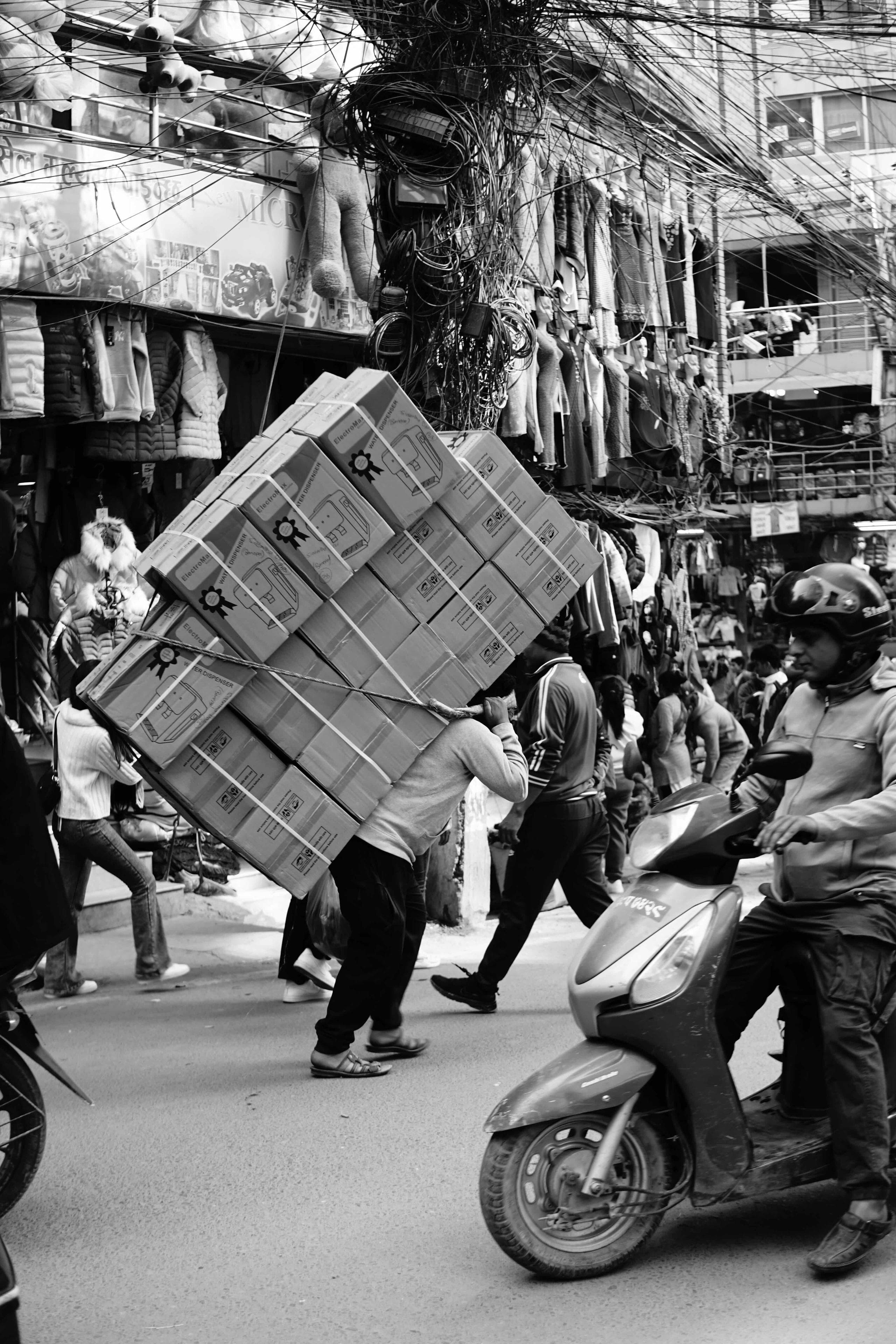 Und die Stadt hat sich, zumindest in manchen Gebieten auch komplett auf diese Art des Tourismus eingestellt. Läuft man in Thamel an den Geschäften vorbei findet man zu 90% Outdoor-Shops aneinandergereiht. Hier gibt es wirklich alles für den Globetrotter-Liebhaber, und das zu einem Bruchteil des Preises. Wir könnten „The North Face“ ( die anscheinend beliebteste Marke hier) Jacken für 10€ kaufen, Wanderschuhe ab 30, „Daunen“-Schlafsäcke ab 15€ und auch sonst alles was das Wanderherz sich nur so vorstellen kann. Und das durch-die-Läden-streifen macht auch wirklich Spaß! Da bleibt man manchmal 10 Minuten vor einem Vollkörper-Anzug staunend stehen, der es ermöglicht zu simulieren, wie es wäre wenn man das doppelte Körper-Volumen hätte.
