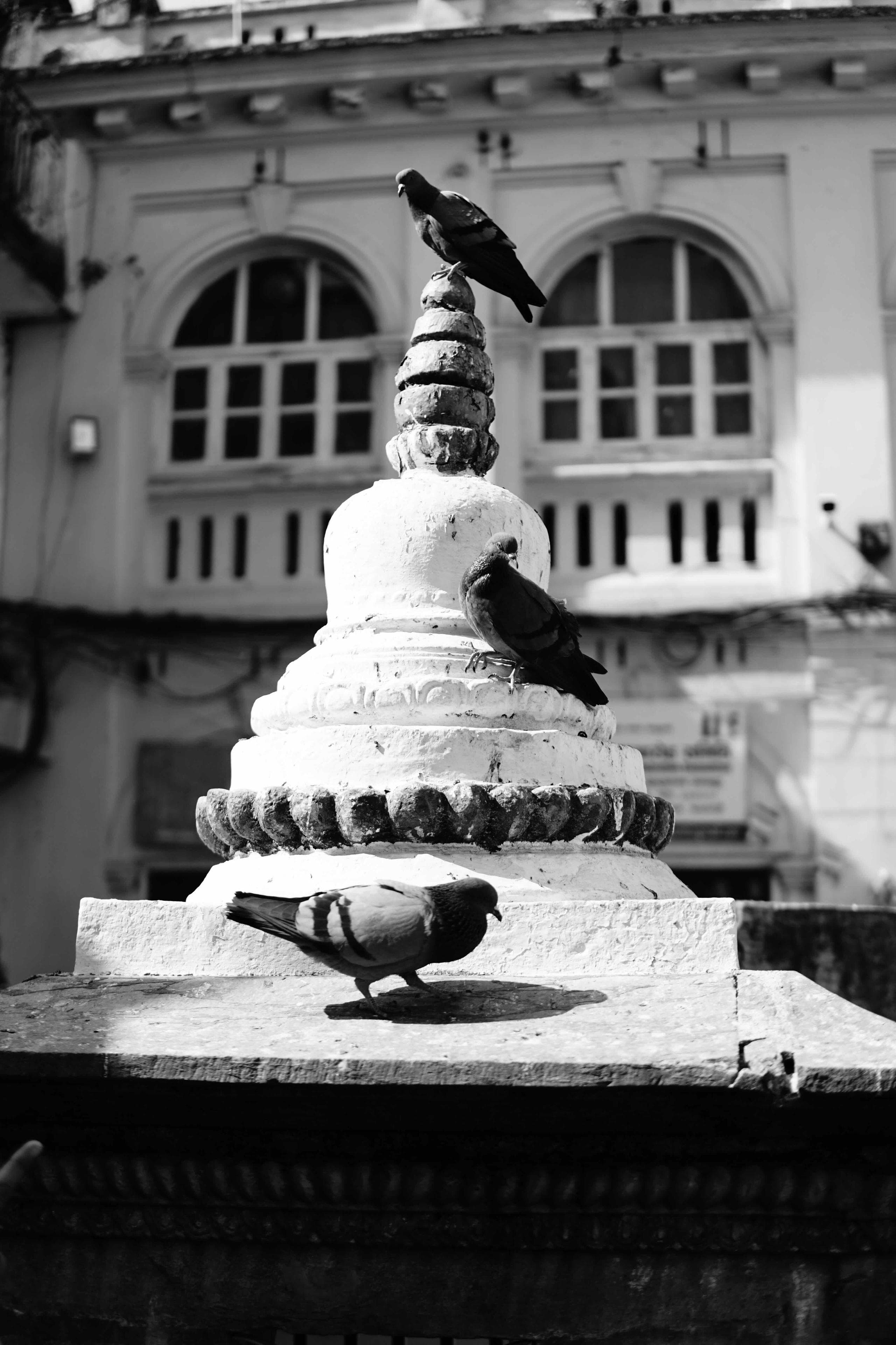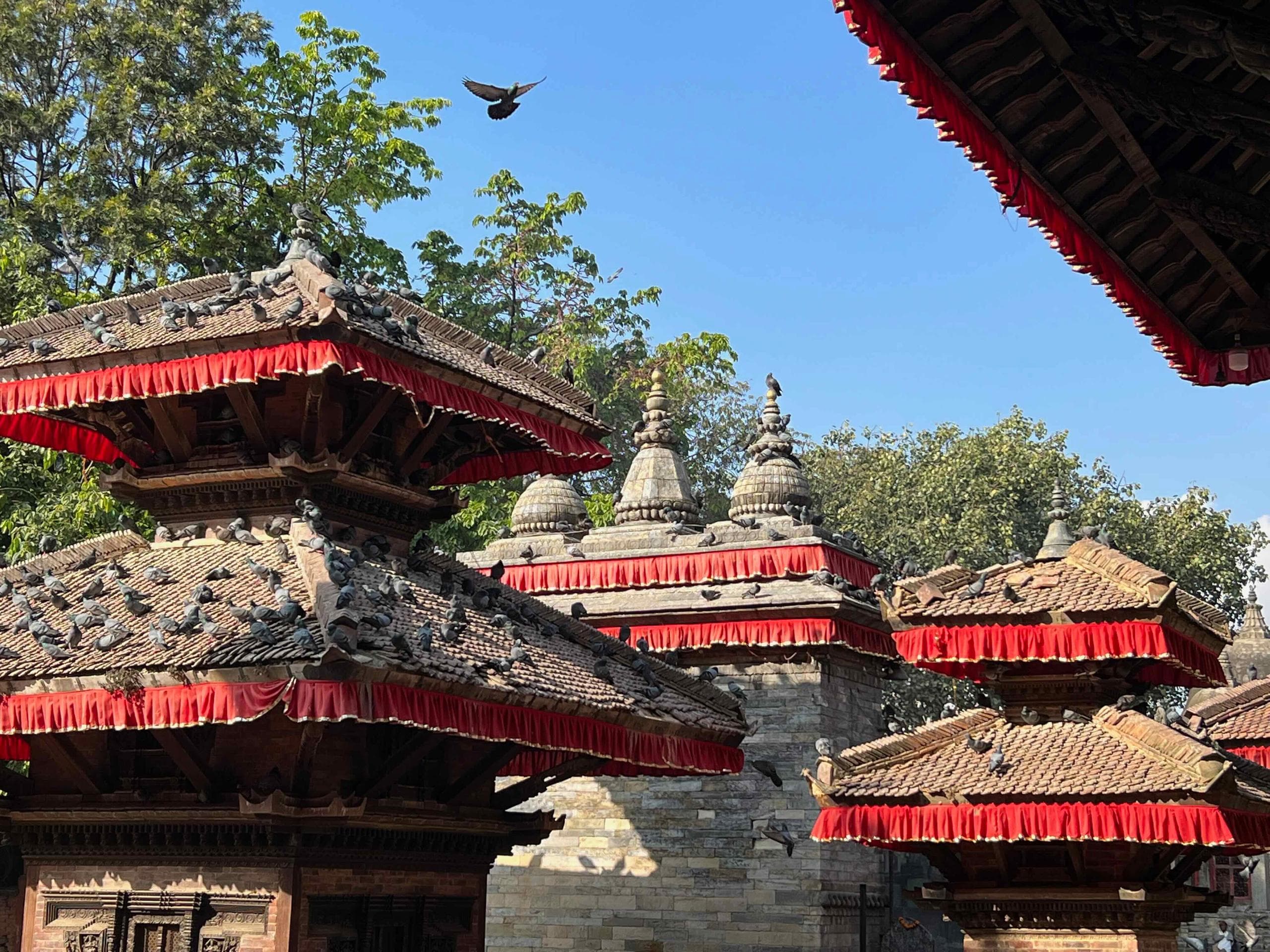 Neben den Outdoor-Geschäften bietet Kathmandu aber auch noch zahllose andere sehenswerte Orte. Da gibt es zum Beispiel die bezaubernde Altstadt am Durbar Square. Sie zeigt, leider teilweise noch nach dem schwersten Erdbeben in Restauration befindliche Pagodenbauten aus allen möglichen Epochen. Die Nepalesen, übrigens die Erfinder dieses Baustils, haben hier einst ein Zentrum voller religiöser und majestätischer Pracht erbaut. Besonders schön ist auch, dass die Holzbauten auch heutzutage noch intensiv religiös genutzt werden. Auch hier finden sich viele hinduistische Statuen denen aufwändig zubereitete Festmahle geopfert werden. Von Weihrauch und Kerzenrauch umhüllt werden dann die Gläubigen durch passende Priester gesalbt. Ein Erlebnis, das wir stundenlang beobachten konnten. Zu spannend war das Treiben des religiösen Platzes.