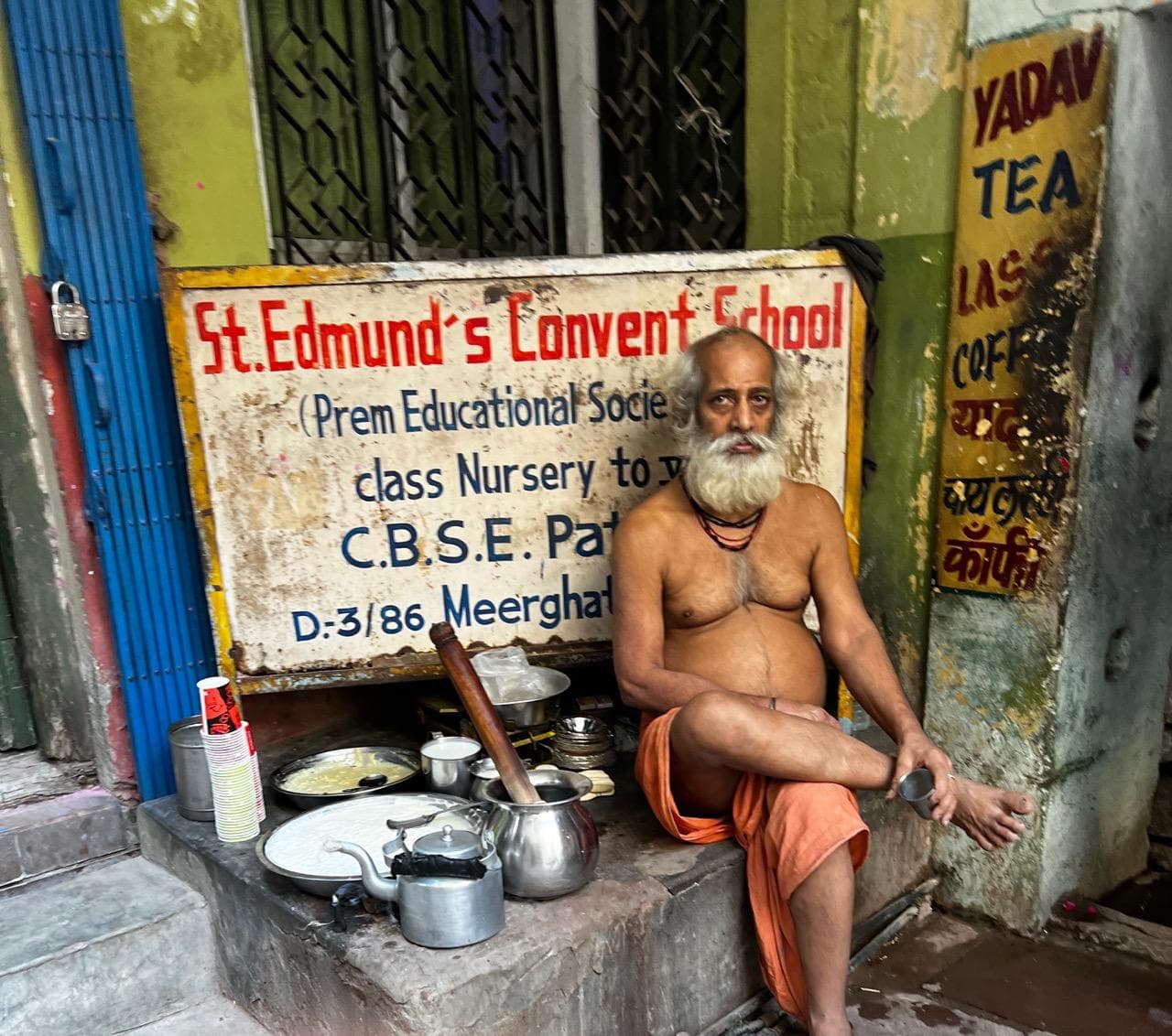 Überall um uns herum laufen Menschen. Gerüche strömen auf uns herab, laute, drängende Huper schrecken uns aus unserer Tagträumerei und ein Motorrad rauscht durch die enge Gasse. Vorbei am Markt, am Lassi-Stand mit frischem Joghurt aus Einmal-Keramikbechern, unter lichtdurchfluteten Planen hindurch und immer wieder nach links und rechts zuckend, einem Tempel, einer Kuh, einem Hund oder einem Trauerzug ausweichend. Nach wenigen Sekunden ist der Fahrer auch schon wieder aus dem Sichtfeld, unsere Köpfe wieder damit beschäftigt die Masse an Eindrücken und Bildern zu verarbeiten. Ja, das ist Indien. Ja, wir sind in Indien. Ja, so stellt man sich Indien vor. Laut, intensiv, lecker, voll voller Ideen, Farben, Erfahrungen und Geräuschen.