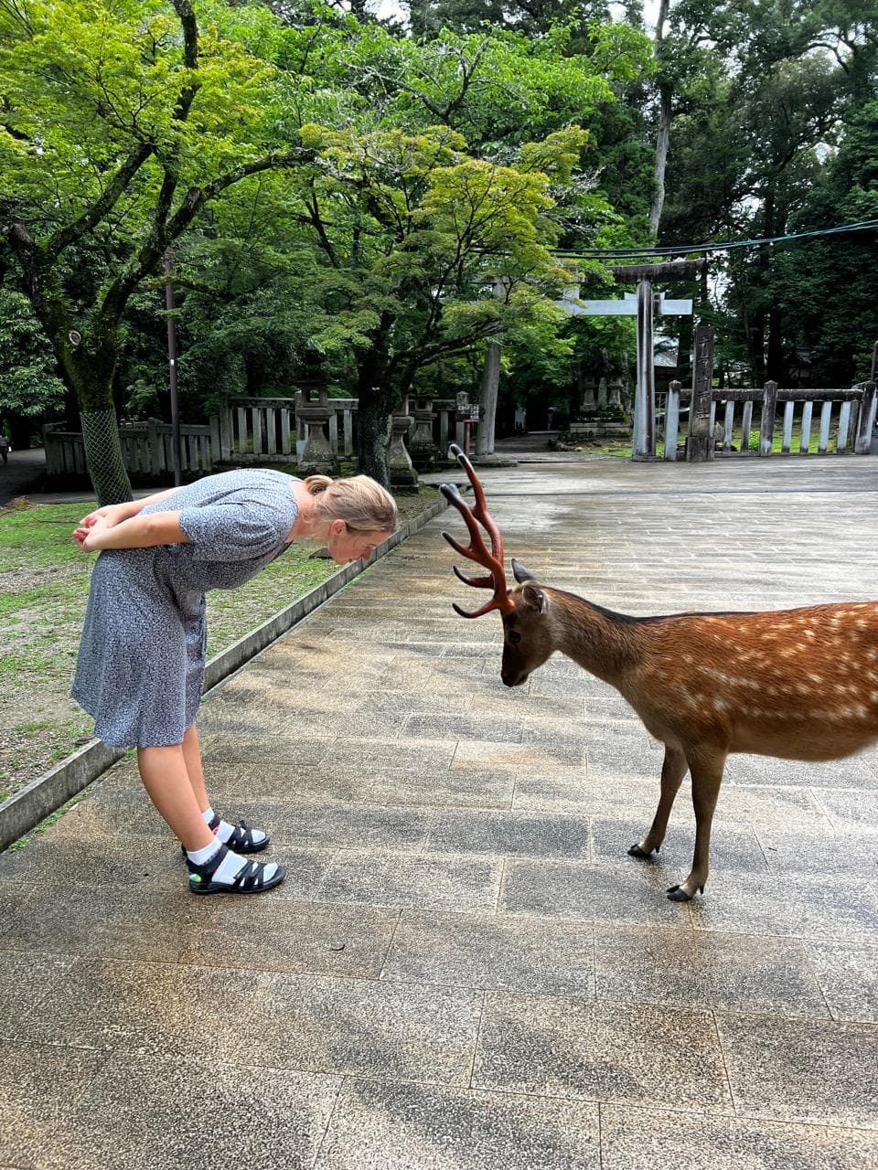 In Nara gibt es mehrere Banden kleinkrimineller Rehe die ohne weitere Einschränkungen im Stadt und Parkgebiet herumstreunern. Diese unscheinbaren Ansammlungen von 1-20 Tieren mögen auf den ersten Blick harmlos und friedliebend wirken, stellen aber eine große Gefahr für Leib und Leben dar. Eine beliebte Masche der Kleinkriminellen ist das sogenannte “Bambi-Manöver” bei dem ein kleines, süßes Reh eingesetzt wird. Dieses wird ahnungslosen Touristen zur Ablenkung präsentiert. Während diese dann damit beschäftigt sind Fotos von den reizvoll blinzelnden Rehaugen zu schießen pirscht sich eine Gruppe Jugendlicher von hinten an ihre Opfer heran und greift im unerwartetsten Moment zu. Innerhalb weniger Sekunden werden Touristen so ihrer teuren Reh-Cracker befreit ohne es im besseren Falle überhaupt zu bemerken. Sollten Sie einer solchen Gang begegnen, verhalten Sie sich ruhig und spielen sie das Spiel mit, denn anderenfalls scheuen die Tiere auch nicht vor Handgreiflichkeiten zurück. Bitte entschuldigen Sie die Begrifflichkeit, aber anstatt nur “Fürn Arsch” gilt dann das Motte “In den Arsch” und die Gangmitglieder werden versuchen, auch aus den Hintern ihrer Opfer ein Stückchen Essbares hervorzubringen.