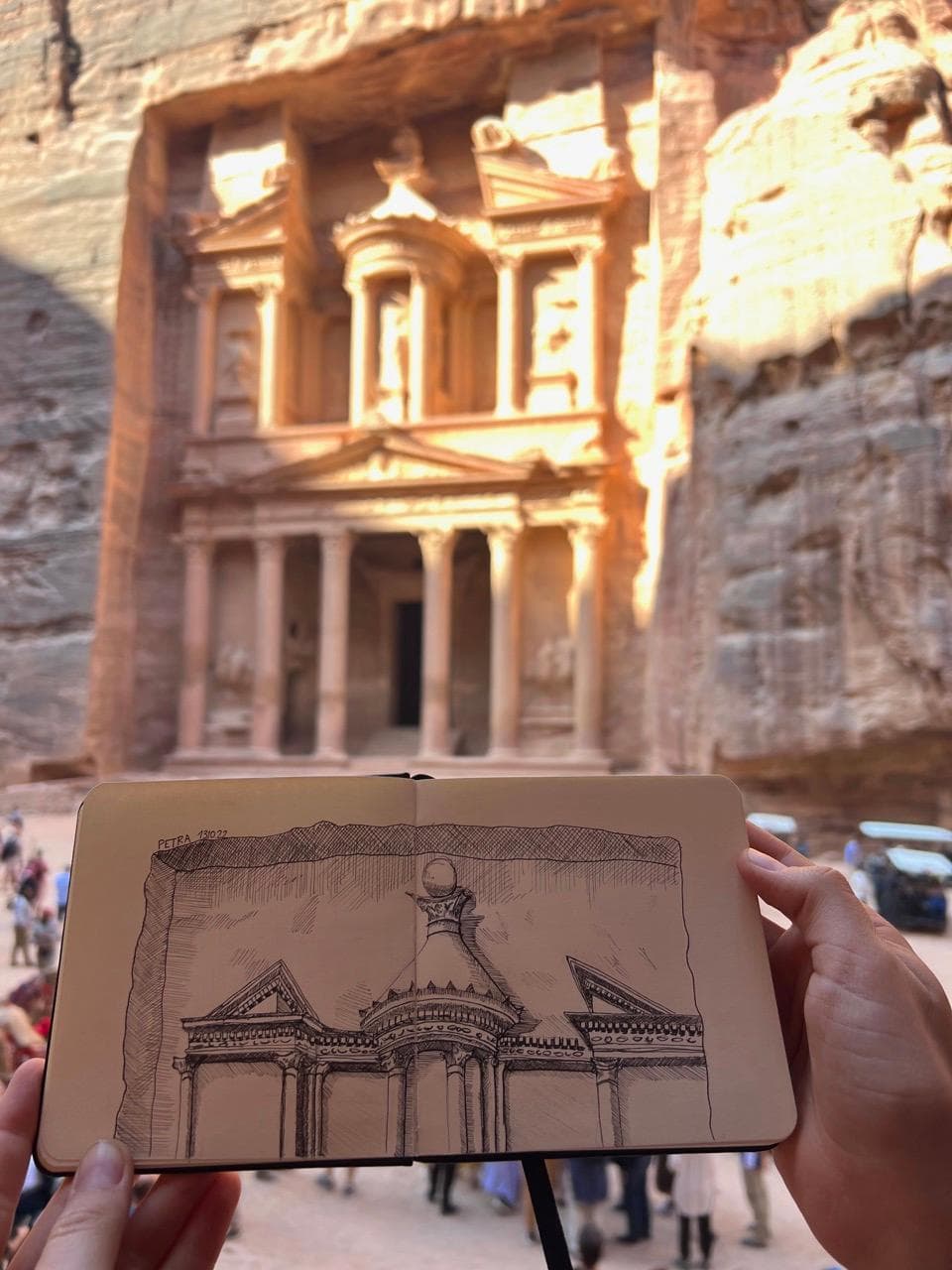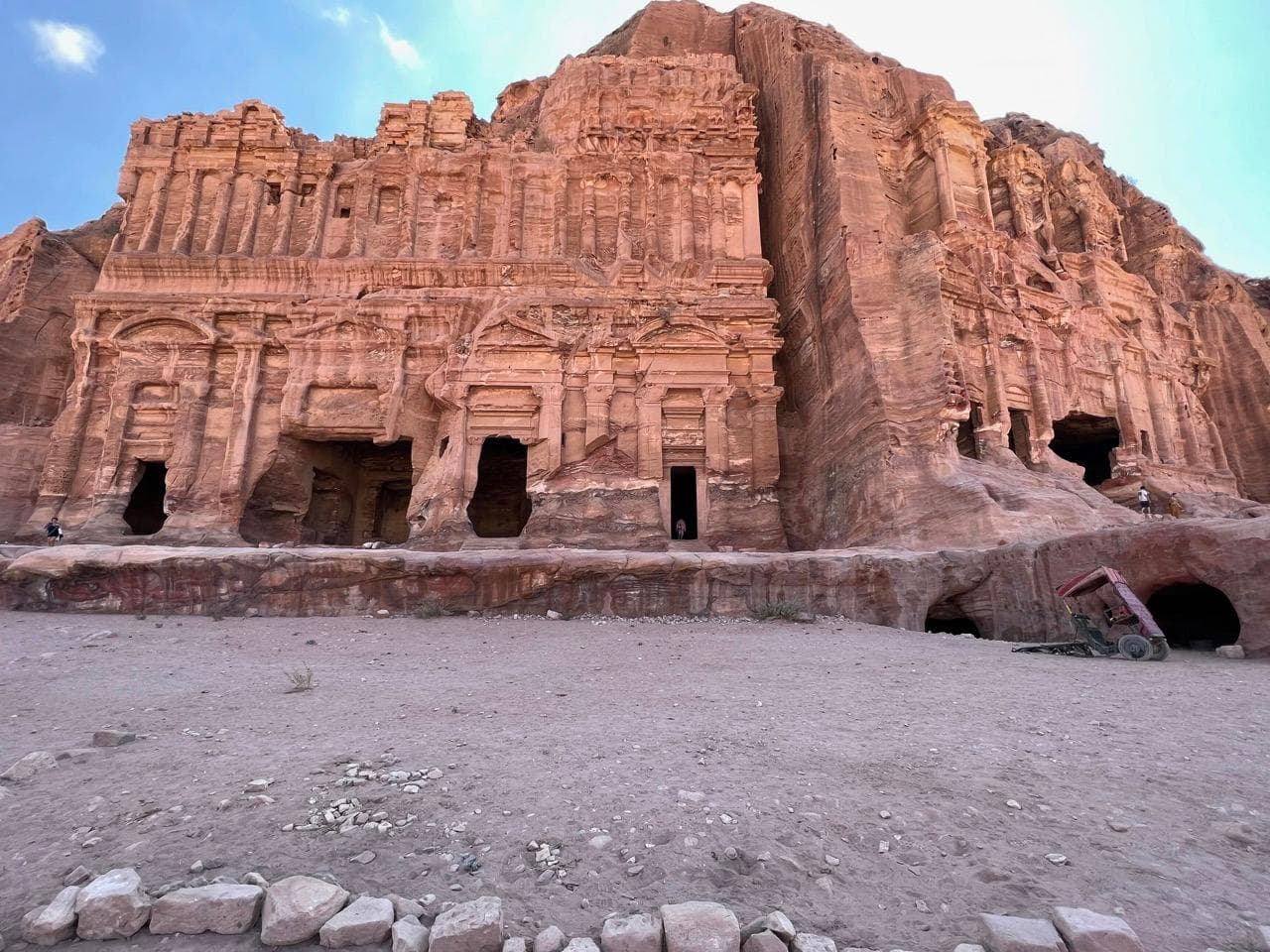 Vor mehr als 2000 Jahren haben die Nabatäer sich dazu entschieden, ihre Hauptstadt hier in Jordanien zu errichten. „Stein auf Stein, das kann ja jeder“ muss sich ein/e ambitionierte/r Stadtplaner/in damals gedacht haben als der Plan entstand alle großen Gebäude direkt aus dem Stein zu schlagen anstatt sie wie andernorts üblich von Grund auf zu erbauen. Und was soll ich dazu sagen, ich bin dieser Person heute sehr dankbar. Denn diese Bauweise hat wohl dazu geführt, dass wir heute hier hergekommen sind.