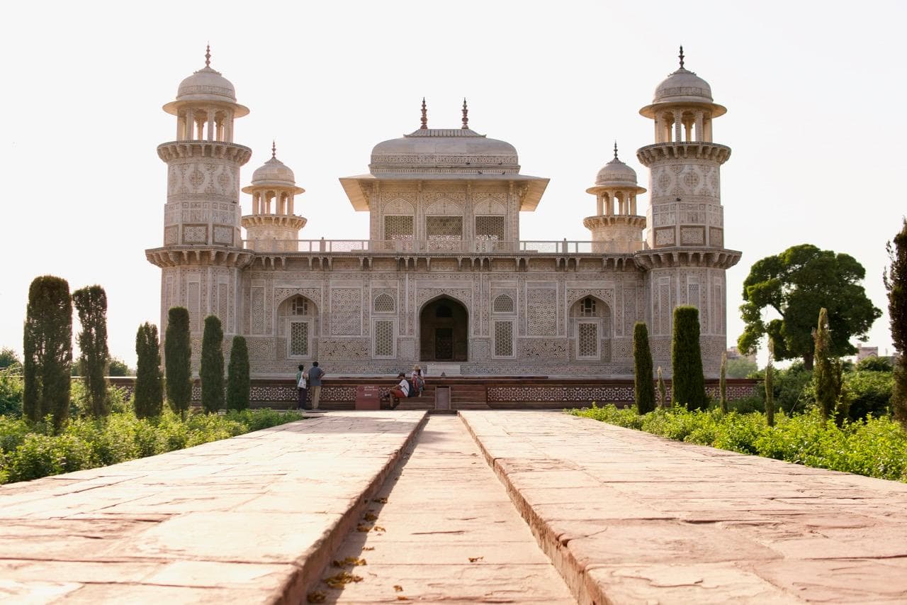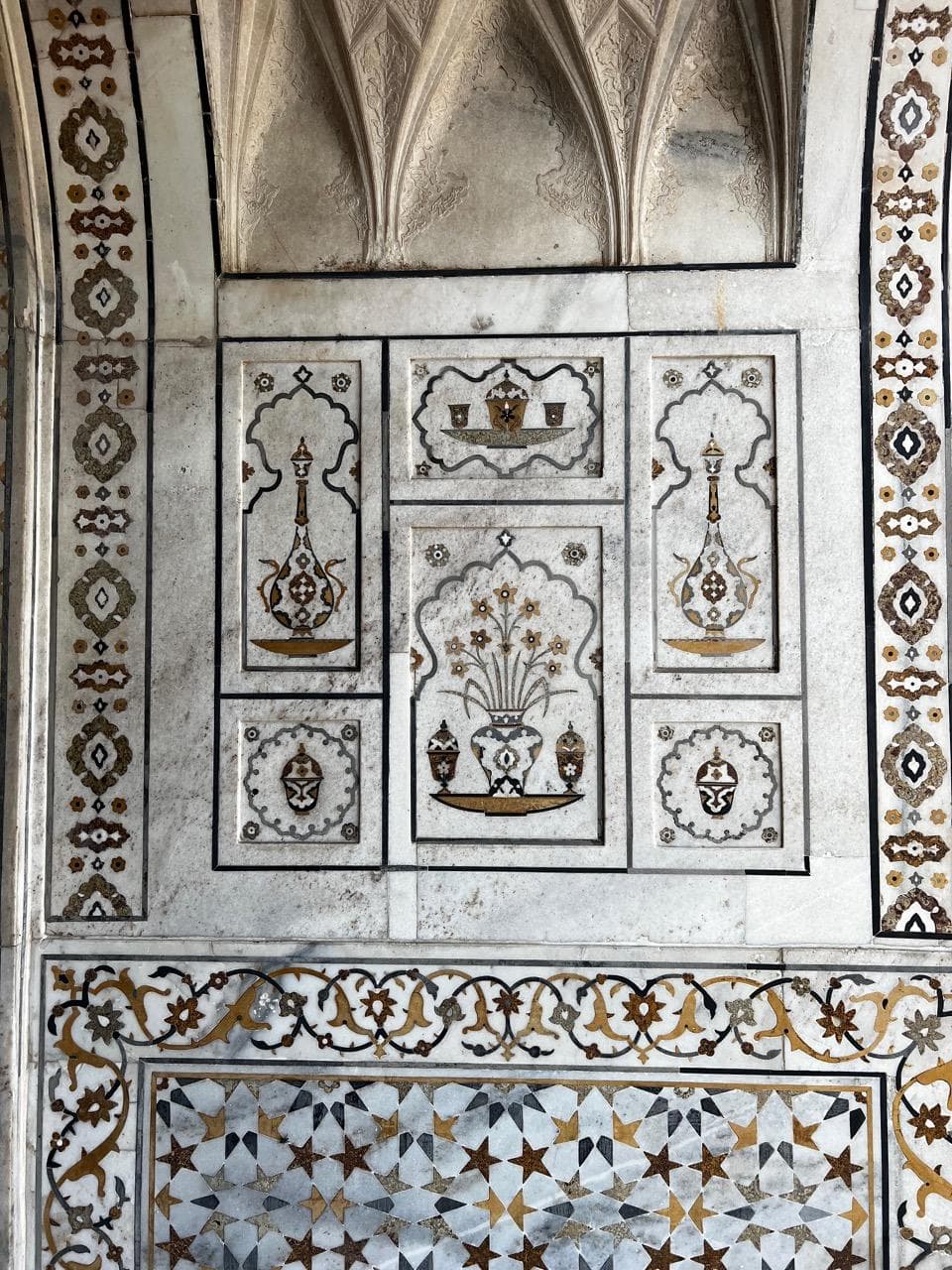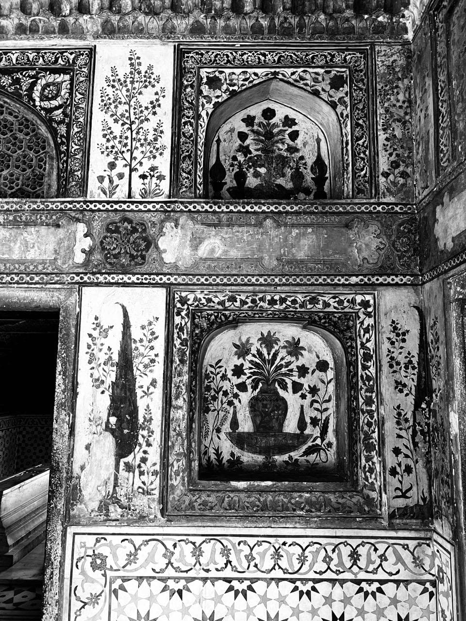 Nachdem wir in den nächsten beiden Tagen erfolglos versucht hatten noch vor dem Sonnenaufgang aufzustehen um zum Taj zu gehen hatten wir jede Menge Zeit, die anderen Highlights Agras kennenzulernen. Und, oh unglaublicher Ganesh, was waren das für fantastische Dinge die wir zu Gesicht bekamen. Denn auch wenn Agra hauptsächlich für den Taj Mahal bekannt ist stehen hier noch so einige andere Kaliber ruinenverliebter Reisender herum, die es zu erobern gilt. Vor allen anderen steht hier der sogenannte “Mini-Taj”. Ein Grabmal das noch vor dem Taj Mahal erbaut wurde und wohl noch viel mehr als Hymne an die Liebe und das ewige Leben zu sehen ist. Der Mini-Taj ist, genau wie sein größerer Bruder, eine komplett symmetrisches Gebäude das in eine zauberhaft friedvolle Gartenanlage hineingebaut ist. Er hat alles was sein großer Bruder auch hat, Türme, Tore, Intarsien, Marmor usw., aber, wie wir fanden, in viel liebevollerer Ausführung. Sobald wir die Anlage betreten hatten, die nebenbei gesagt wesentlich weniger beliebt ist als der Taj, wurden wir ruhiger und entspannter. Alles an diesem Ort sorgte dafür, dass sich die Besucher bedächtig und ruhig an die Toten erinnern konnten, ohne dass es aufdringlich oder kitschig wirkte. Ich habe diesmal wirklich nicht den richtigen Wortschatz um adäquat zu beschreiben, wie perfekt die einzelnen Proportionen und Maße dem Auge des Betrachters schmeichelten. Allein von Außen war der Mini-Taj ein perfektes Gebäude. Als wir dann näher an den Hauptbau herantraten kamen wir noch viel weniger aus dem Staunen heraus. Über die Ganze Innen- und Außenfassade erstreckten sich tausende zierliche Mosaike in unbeschreiblicher Kleinstarbeit jahrelang zusammengetragen. Da waren hunderte faszinierende Blumendarstellungen, beruhigende Himmelszelte und Muster und Linien so weit das Auge nur reichte. Man merkte sofort, dass dieses Kunstwerk von jemandem erstellt wurde, der alles bis ins kleinste Detail geplant und ausgeführt hatte, der sein ganzes meisterhaftes Können darin gesetzt hatte, den Verstorbenen (oder vielleicht eher zu Sterbenden) ein Liebeslied zu erschaffen. (Tut mir Leid für diesen Kitsch, aber so ganz ohne geht’s bei diesem Thema einfach nicht)