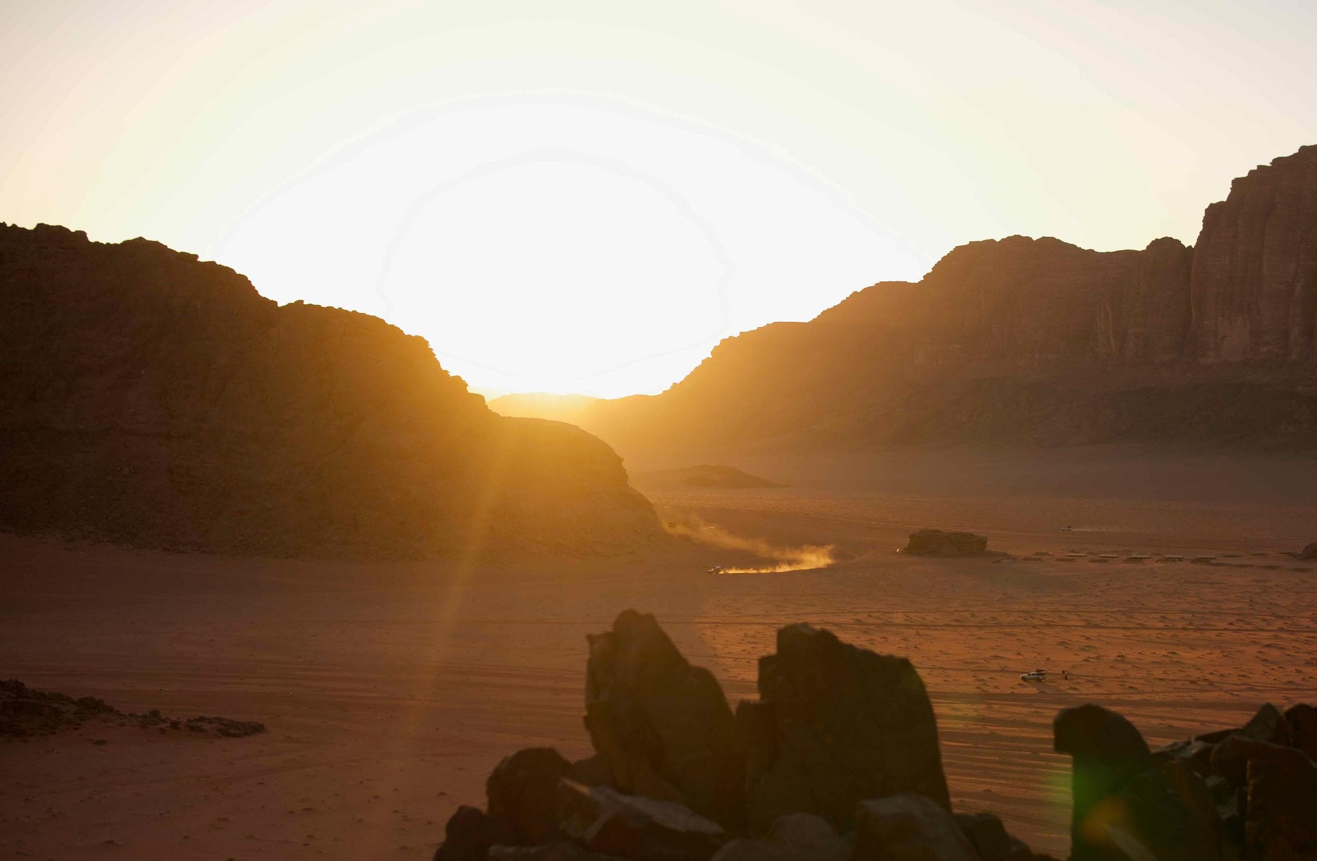 Ohne Kommentar bekam ich ein Handy in die Hand gedrückt durch das ich über den “Deal” informiert wurde. Es sei wohl ein “Missverständnis” gewesen dass wir über Booking.com einen so geringen Preis gezahlt hätten. Der Transport von Rum zu unserem Camp sei nicht im Preis inbegriffen. Das wären dann nochmal 35 Euro extra, also gut das Dreifache unseres Übernachtungspreises. Wir könnten aber stattdessen auch eine Wüsten-Tour mit einem 4x4er machen, das wären dann insgesamt um die 120 Euro. Wir hatten, bei anderen Camps, schon von dieser Abzocke gehört, aber uns auch schon überlegt, ob wir nicht vielleicht doch eine Tour machen sollten, einfach um etwas mehr als nur den Sonnenuntergang und die unmittelbare Umgebung unseres Camps zu besichtigen. Widerwillig stimmten wir also diesem “Freundschaftspreis” zu und stiegen in den Wagen.